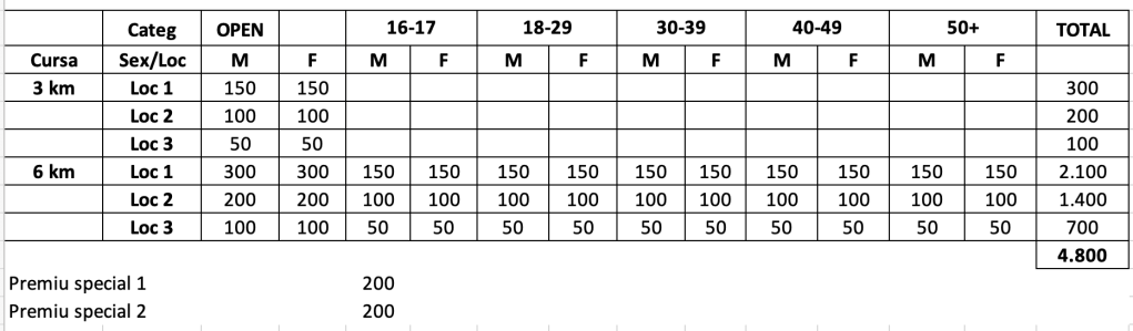 - Cursa Combo (opțiunea de a alerga în ambele curse): 3km + 6 km – 230 lei
